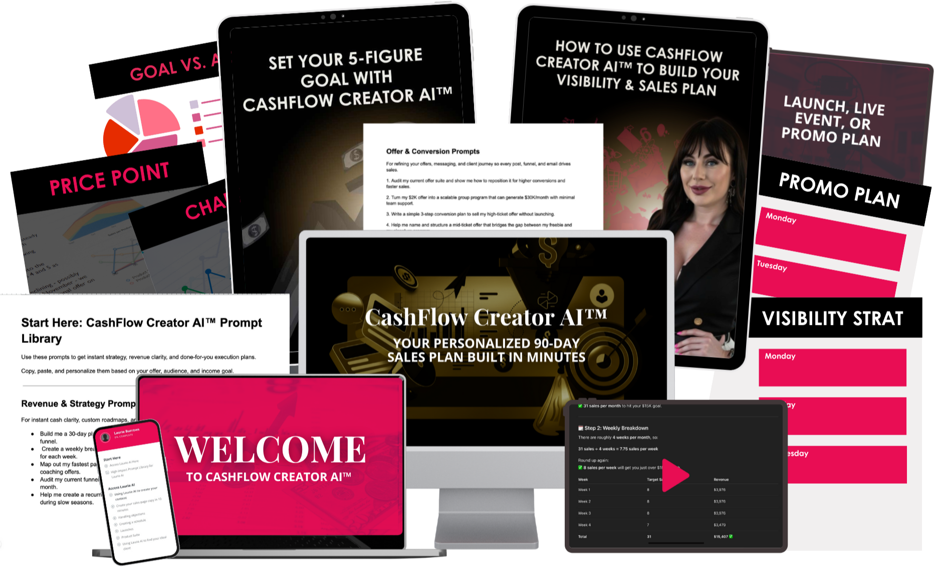 No more vague goals or “I want to make 10K this month” without knowing how. CashFlow Creator AI™ gives you the actual numbers: how many offers to sell, at what price point, and what your targets need to look like week by week.